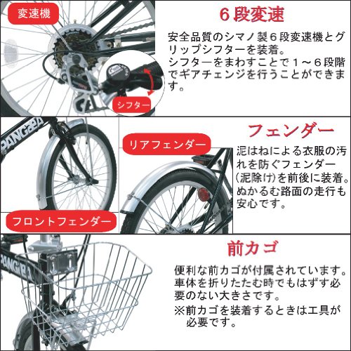 PANGAEA ROBINSON 20-Inch Foldable Bicycle Black Shimano 6-Speed with Fenders and Basket 73377-0199